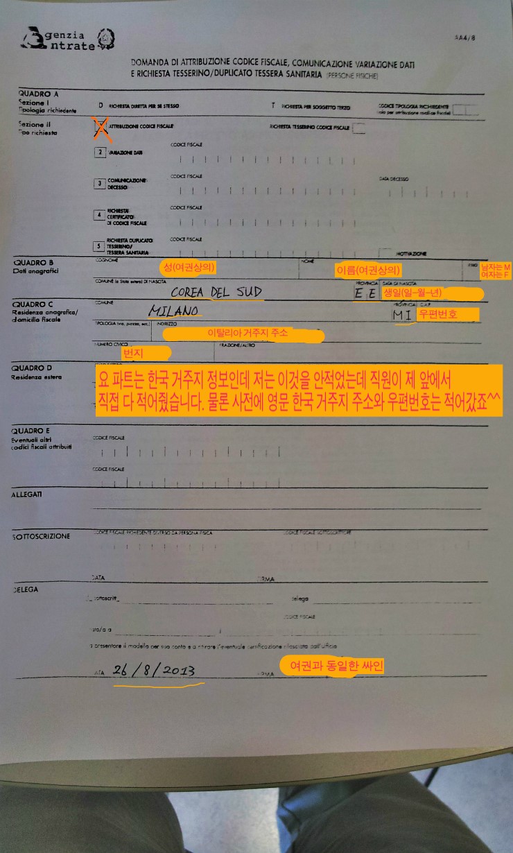 코디체 피스칼레 키트처러 작성하시고 돈 98유로 와 함께 제출하면 됩니다.