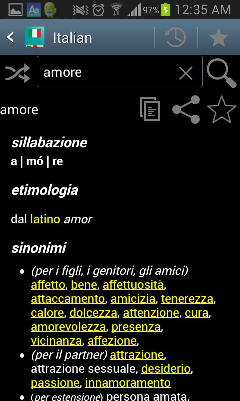 amore 라는 단어를 검색해 보겠습니다.