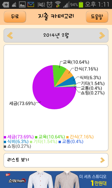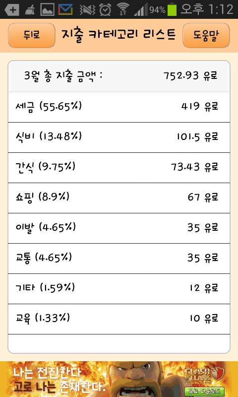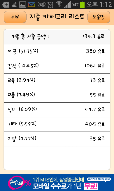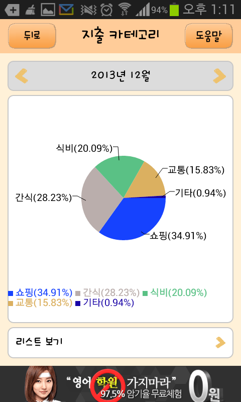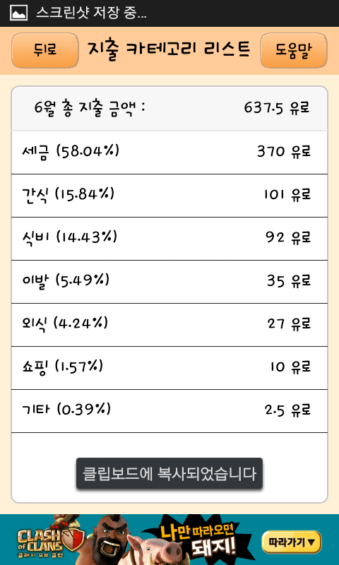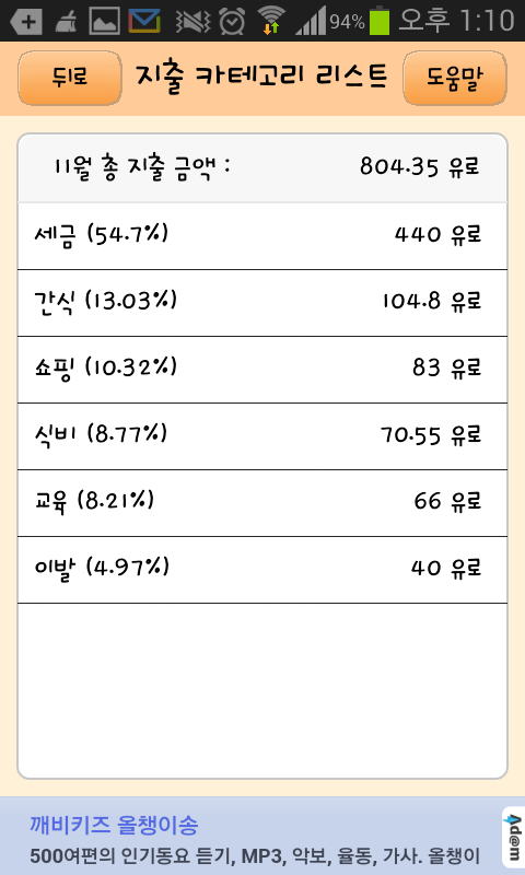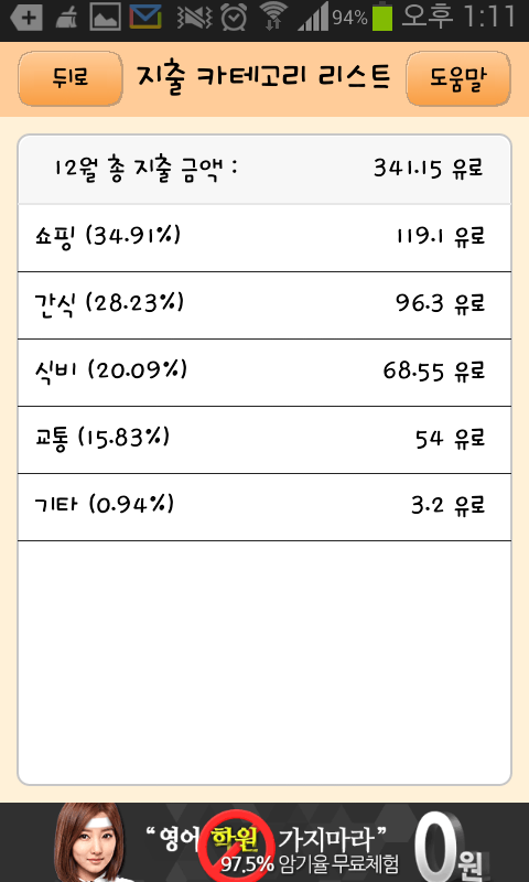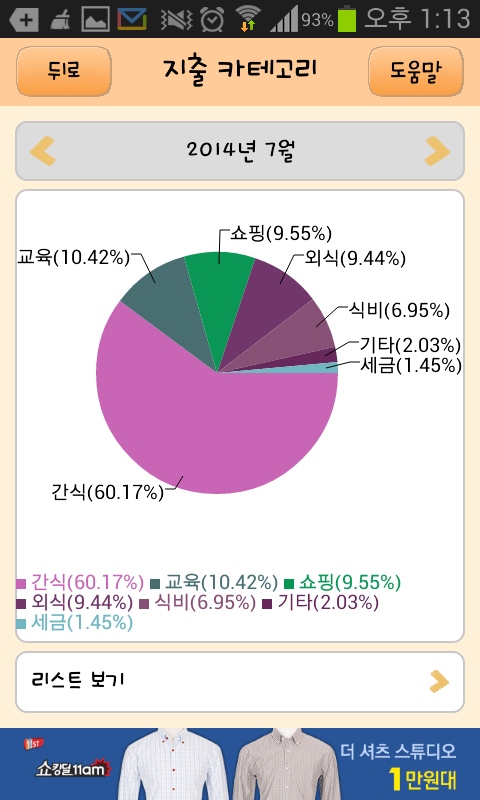 *이때는 시험공부에 전념하느라 요리할 시간이 없어 간식비용이 모든 식비가 간식 카테고리로 들어갔네요.