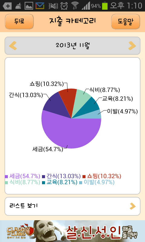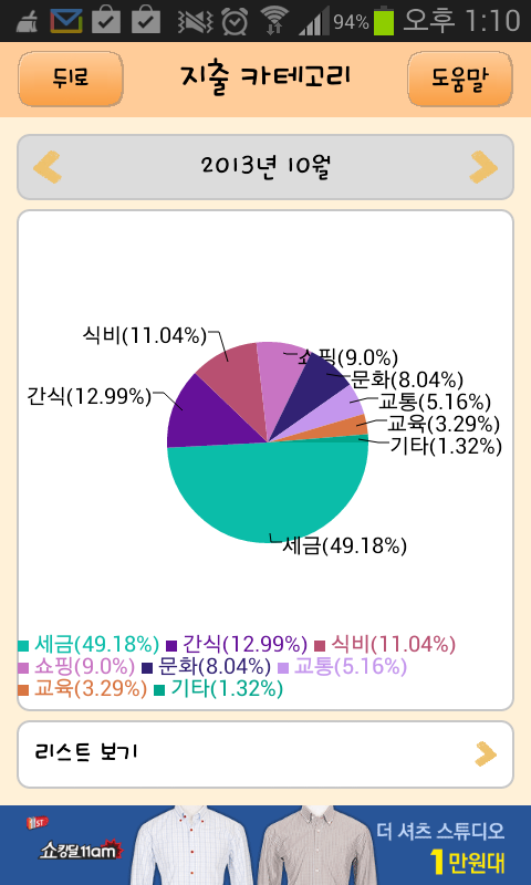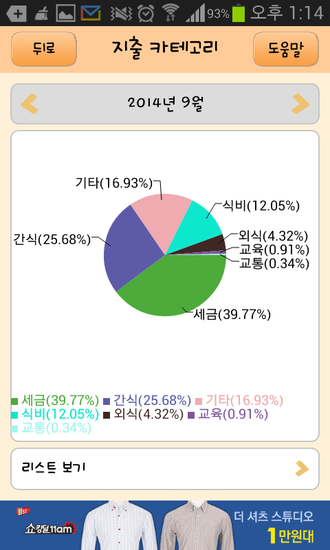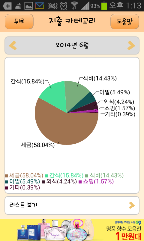 2013년 10월 ~ 2014년 9월 까지의 생활비 내역입니다.
